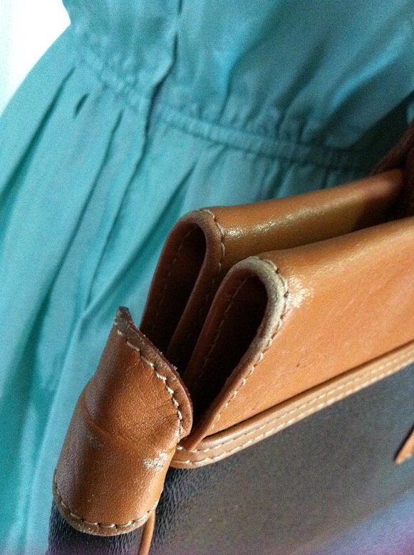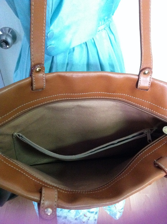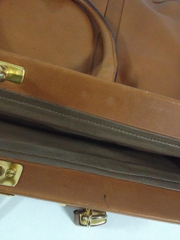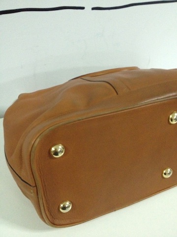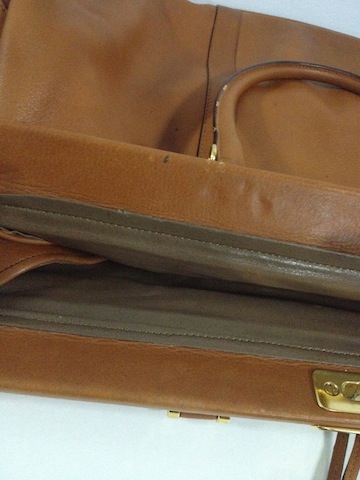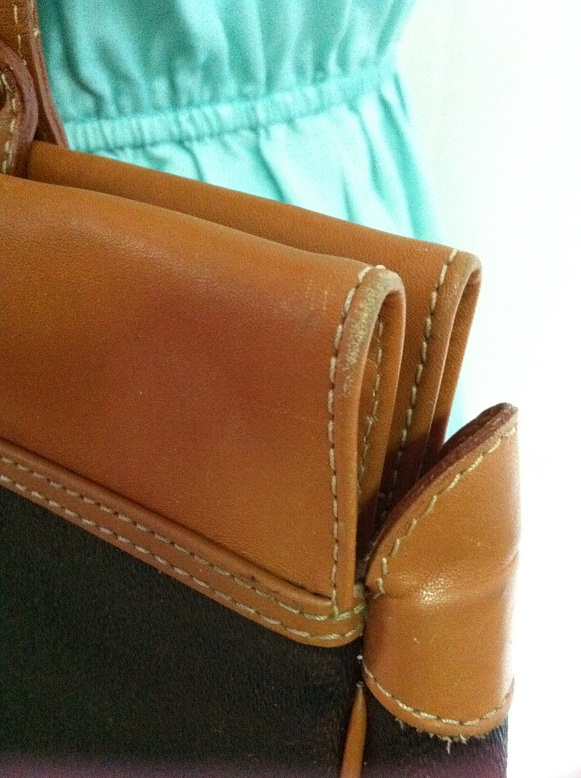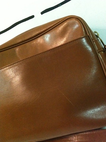 กระเป๋าหนังแท้ สภาพใช้งาน มุมด้านบนมีถลอกบ้าง มีรอยปากกาหนึ่งจุด