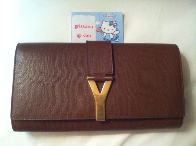 YSL Brown Wallet, Gold Hardware