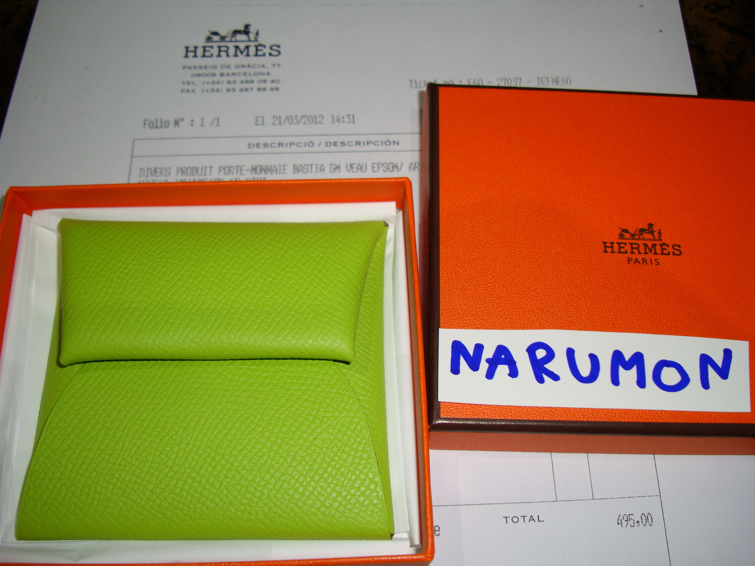 coin purse Porte-Monnaie Bastia GM หนัง Epsom สี KIWI อุปกรณ์เหมือนออกจากชอปค่ะ อันนี้เป็นใบเสร็จ copy ค่ะ