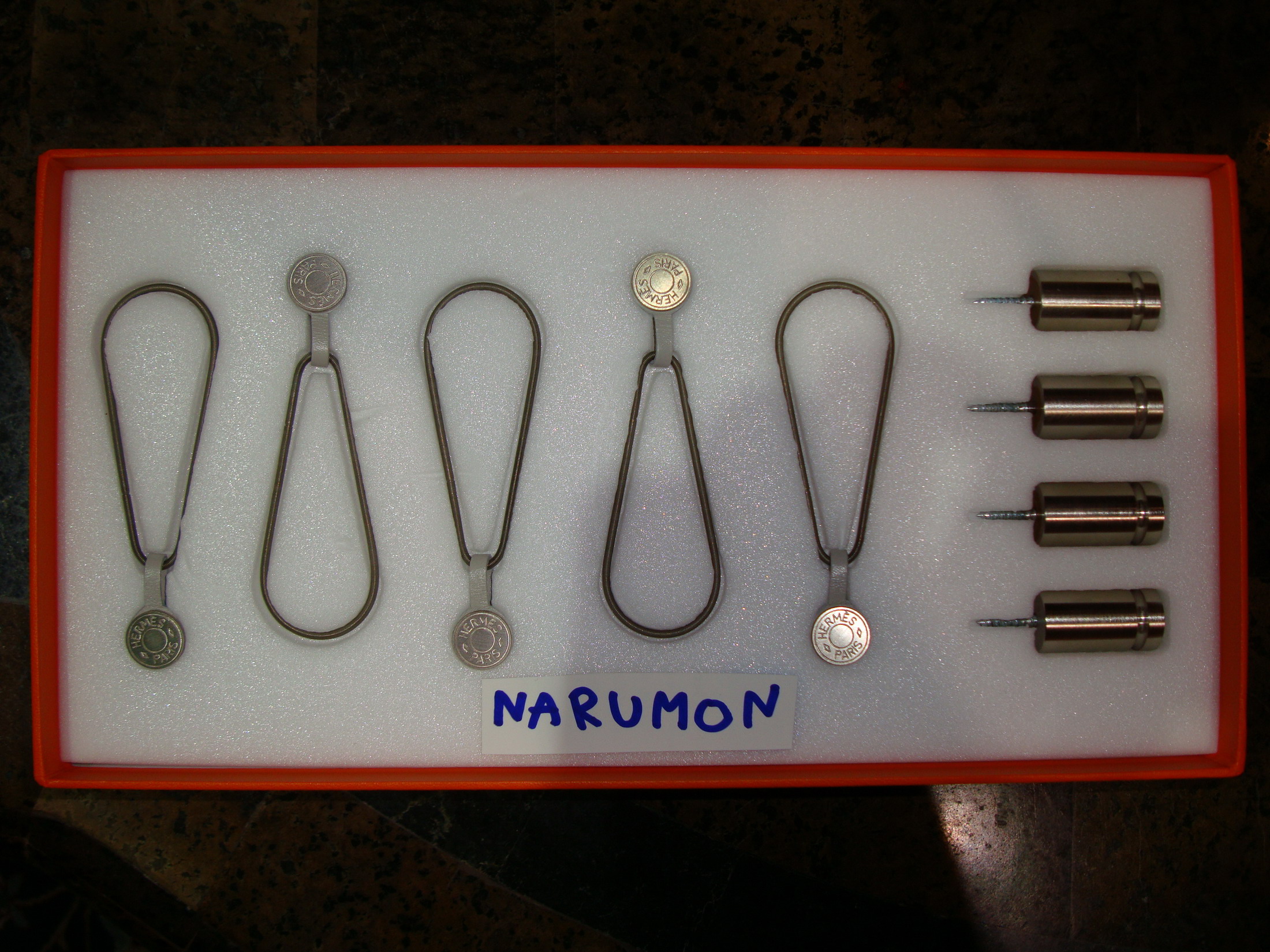 อุปกรณ์แขวนผ้า ( แบบที่shop Hermes ใช้โชว์ผ้าในร้าน ) ไม่ทำให้ผ้าเสียหายนะคะเพราะเป็นแม่เหล็ก คุณสาวๆจะได้โชว์ผ้าลายสวยๆที่มีอยู่ ไม่จำเป็นต้องเก็บไว้แต่ในกล่อง ใช้ตกแต่งบ้านได้สวยงาม เปลี่ยนผ้าผืนสวยได้บ่อยเท่าที่เราต้องการค่ะ + อุปกรณ์เหมือนออกจากชอป + ใบเสร็จcopy (ใช้แขวนแทนกรอบรูป ทำให้ผ้าผืนสวยเป็นได้มากกว่าผ้าพันคอนะคะ)