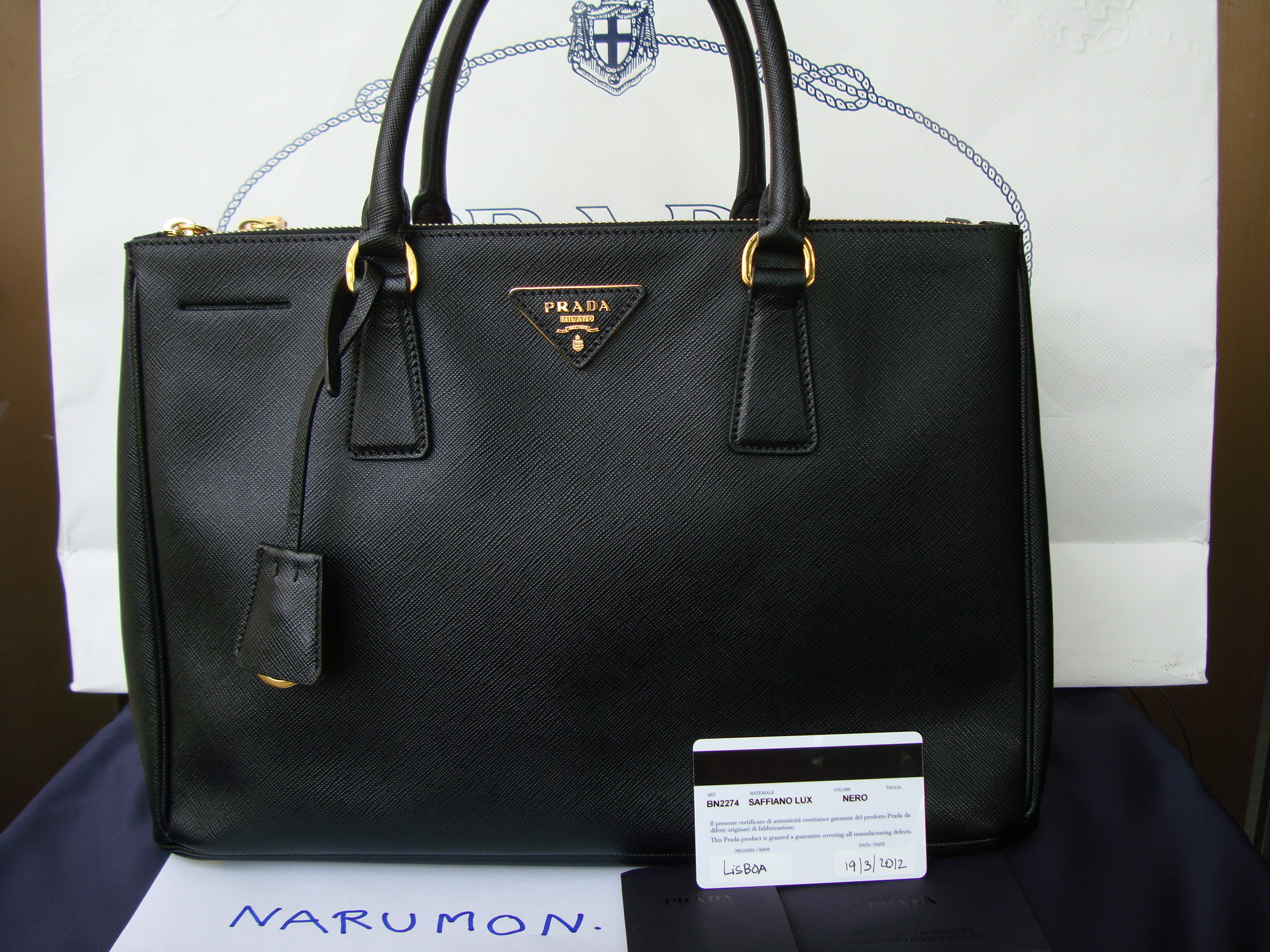 PRADA Saffiano 30 สีดำ ซิปคู่ พร้อมสายสะพาย + อุปกรณ์เหมือนออกจากชอปค่ะ + ใบเสร็จตัวจริง