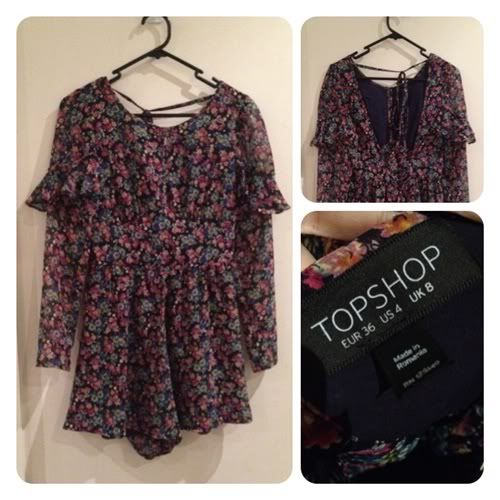 17.USED TOPSHOP VINTAGE FLORAL CUTOUT BACK PLAYSUIT UK8 เอว25-26 ยาว30-31"นะคะ ขาย1700