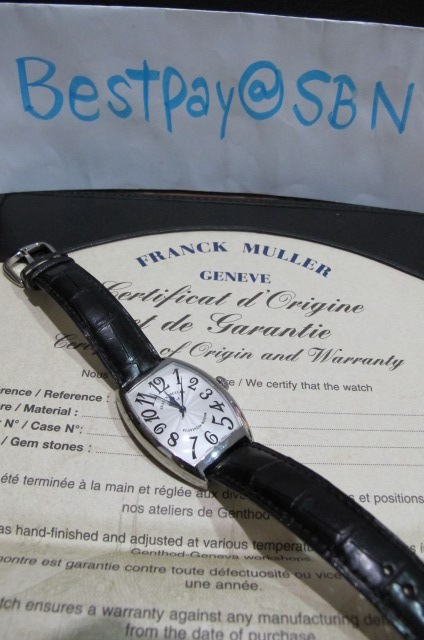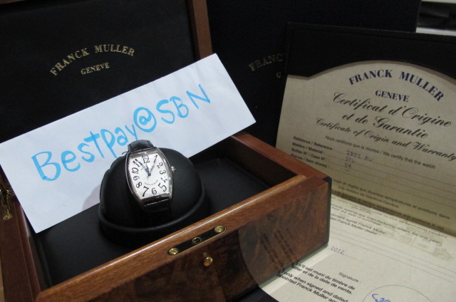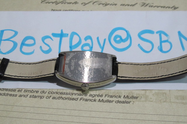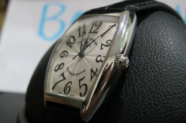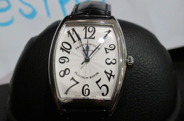 ++ Franck Muller Cintre Curvex 2852SC Platinum Rotor ++ ราคา 231,900 บาท ขนาด Boy Size or Ladies Large เป็นระบบ Automatic กันน้ำ 30 เมตร มาพร้อมสายหนังจระเข้แท้สีดำ ขนาดหน้าปัดยาว 43mm กว้าง 31mm ซื้อมาจาก kingpower เป็นของใหม่ มีกล่องไม้หรู ใบรับประกันตามรูปเลยนะค่ะ