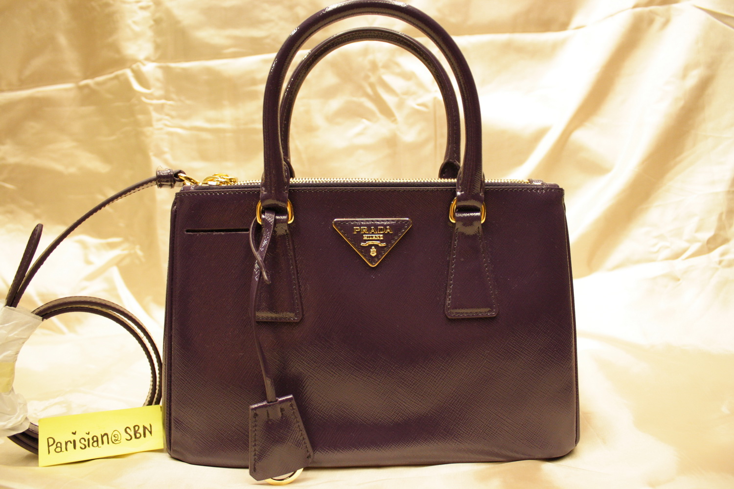PRADA SAFFIANO VERNIC สี UVA SIZE 25 DOUBLE ZIP WITH STRAP 46,500 ล่าสุดจากปราด้าค่ะ สีม่วงเข้ม สวยมากกกก