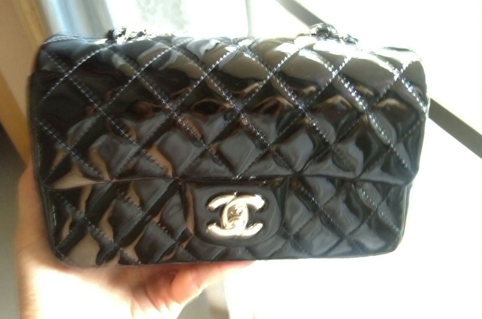 New!!! Chanel mini 8" in black patent SHW