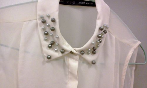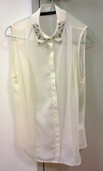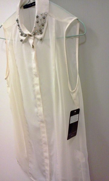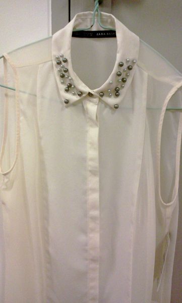 ZARA เสื้อแขดกุดประดับมุกที่คอเสื้อ size s ของใหม่ป้ายห้อย 1700 บาทส่งฟรี