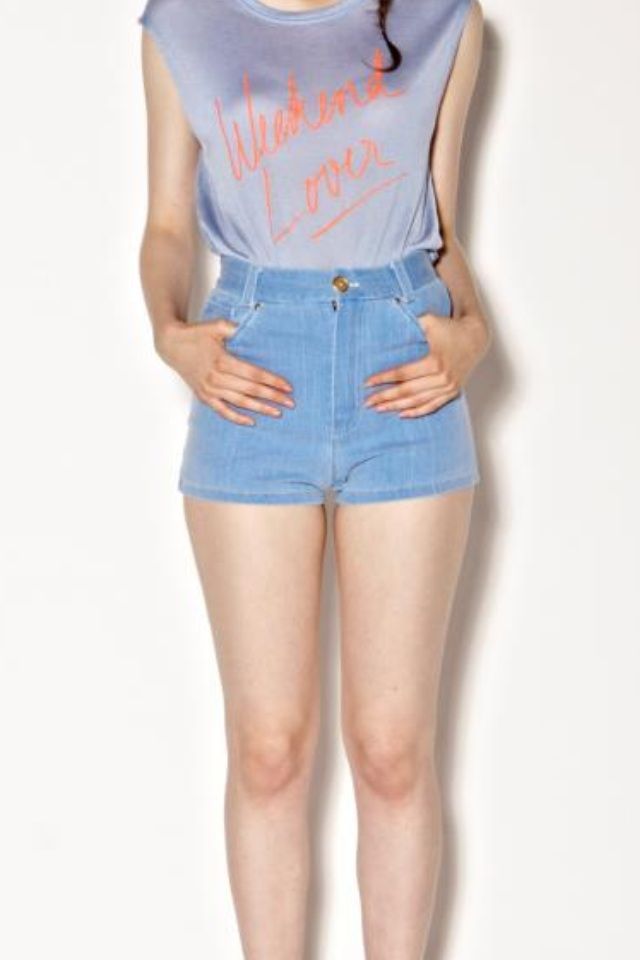 *ชิ้นที่ 6 กางเกงยีนส์ขาสั้นเอวสูงสีฟ้าอ่อนรุ่นใหม่ล่าสุด จาก แดนซิ่ง ไรออท Size "M"