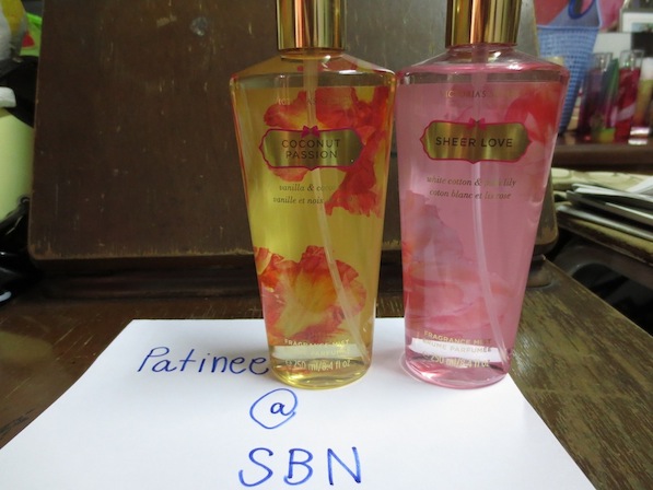 victoria secret บอดี้สเปรย์ กลิ่น coconut passion กับ sheer love ขวดละ 450 บาท ส่งฟรีแบบลงทะเบียน