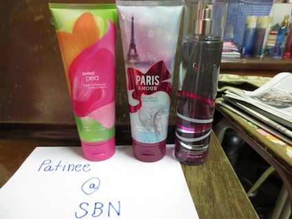 ครีมทาผิว Bath& Body works มี 2 กลิ่น sweet pea และ paris amour ราคา 480 บาทส่งฟรีแบบลงทะเบียน อีกอัน บอดี้สเปรย์ ราคาขวดละ 490 บาทส่งฟรีแบบลงทะเบียน