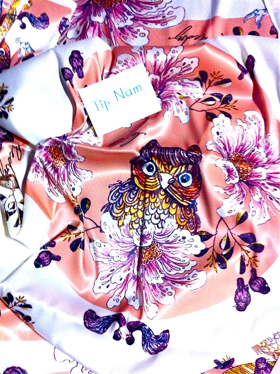 Used ผ้าพันคอ ลาย Rocky Rose เนื้อผ้า satin สภาพดี ล๊อตปกติ ไม่ตัดป้าย พร้อมถุงผ้า ราคา 3,990.- ค่ะ
