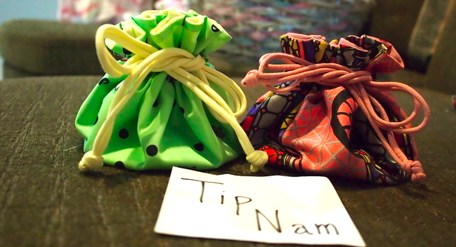 - ถุงผ้าหูรูด Bucket bag ลายลำดวน สีชมพู size S เนื้อผ้า canvas ของใหม่ ราคา 690.- ค่ะ