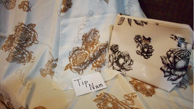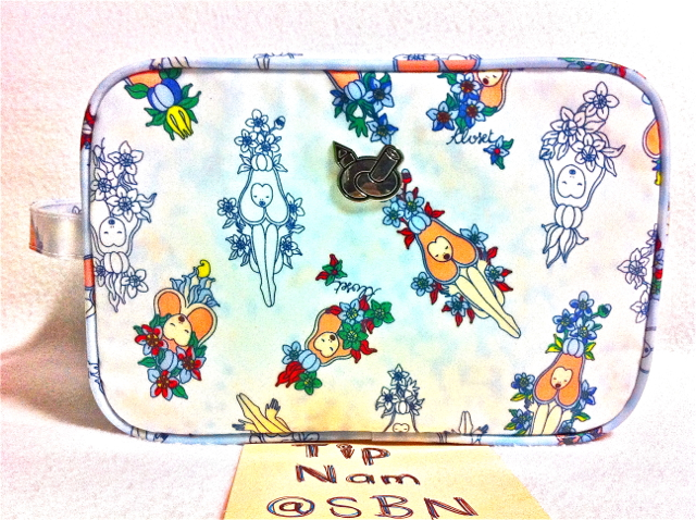 - กระเป๋าเครื่องสำอางค์มีหู ลายลำดวน สีฟ้า ของใหม่ ราคา 1,490.- ค่ะ