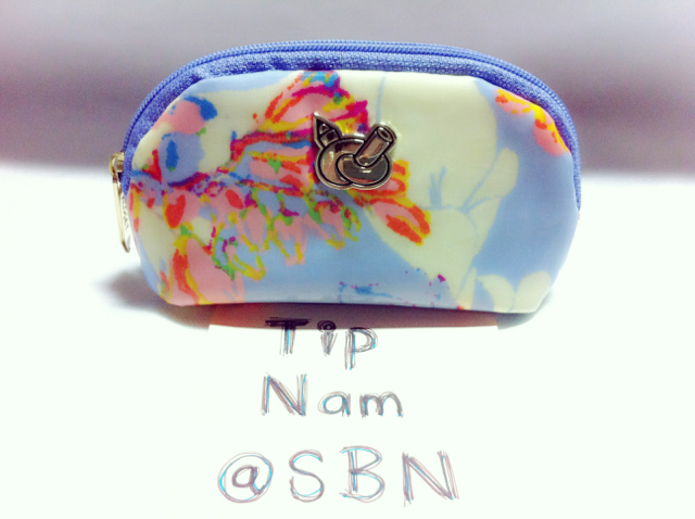 - กระเป๋าเครื่องสำอางค์คางหมู ลายลำดวน สีฟ้า Size S ของใหม่ ราคา 890.- ค่ะ