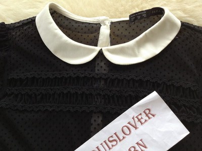 USED LIKE NEW : ZARA BLACK BASIC WHITE PETER PAN COLLAR DOT BLOUSE