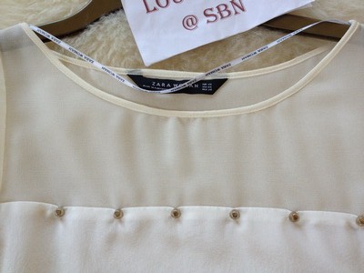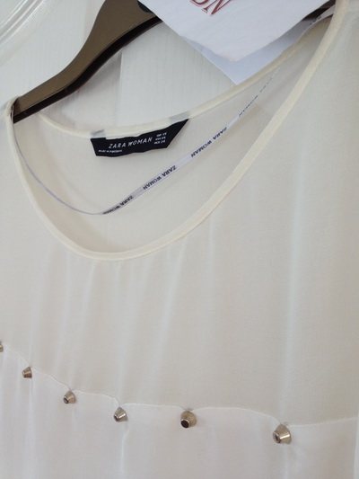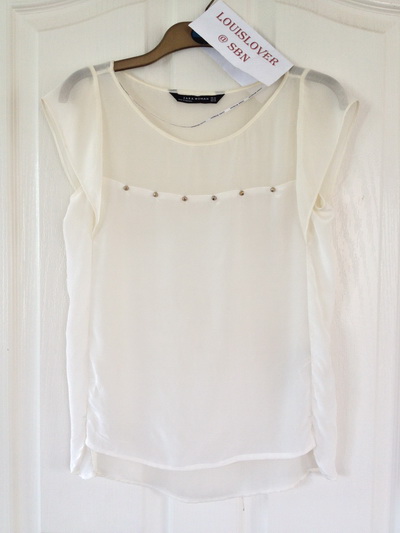 USED ONCE LIKE NEW : ZARA STUDDED TOP WITH FRILL SLEEVE SILK BLOUSE