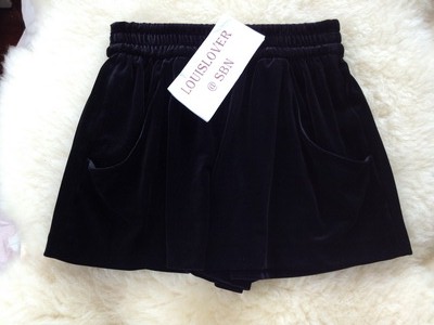 SIZE : XS (กางเกง-กระโปรง ผ้ากำมะหยี่สีดำสนิท เอวยางยืด ก่อนยืด 25")