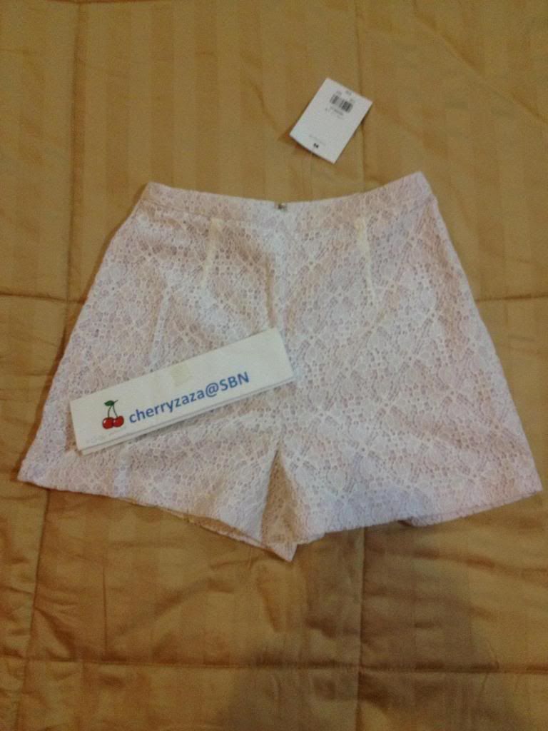 **Topshop กางเกงลูกไม้ ด้านในสีชมพูหวานด้านนอกเป็นลูกไม้สีขาวค่ะ ใหม่พร้อมป้ายค่ะ uk6 พรีมา สองพันกว่าค่ะ ขายเพียง 800 บาท(ค่าส่ง50)ค่ะ