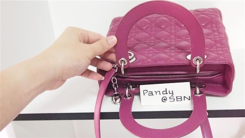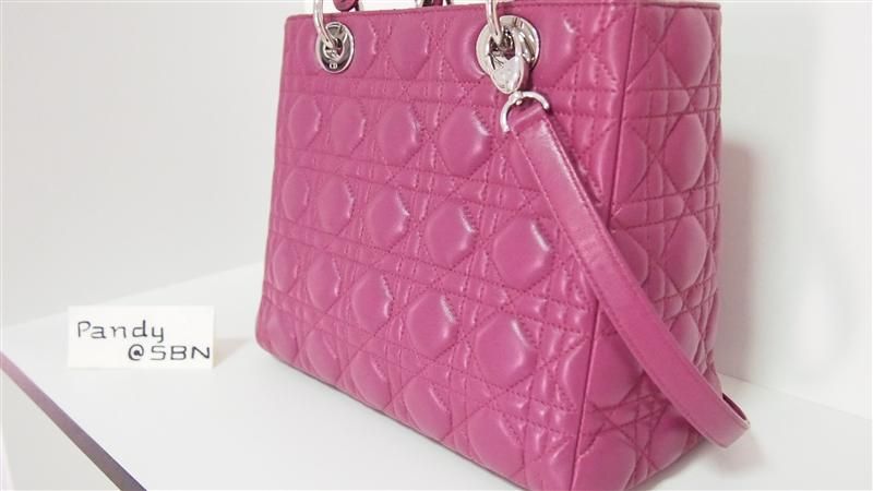 ชิ้นที่ 2 Lady Dior สีชมพู ไซส์10 นิ้ว อะไหล่เงิน เป็นสีชมพูที่สวยมากๆ อีกสีนึงคะ ส่วนสภาพก็งามมากๆ หนังปูดจนระเบิดทุกช่อง