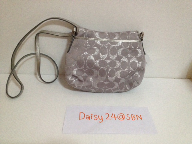 f48048 Coach Signature Ashley Dotted Op Art Swingpack Bag Purse Grey & Silver ราคา sold out บาท Measures 9" Long X 6" High X 3" Wide เป็นสีออกใหม่น่ารักมากคะ เข้ากับเสื้อผ้าได้ง่าย