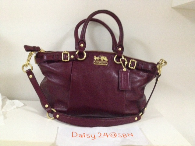 Coach Madison Embossed Logo Leather Sophia Satchel #15922 Color: Champagne Appr Size: 14 ½” (L) x 10” (H) x 3” (W)ราคา 9900 บาท ของจริง สวยหรูมากๆคะ หายากมากด้วย ลูกค้าถามหากันตลอดคะ มากี่ใบก็หมดคะ ขนาดกำลังดี สะพายได้สองแบบ มีสายสะพายยาวให้ด้วยครา่่