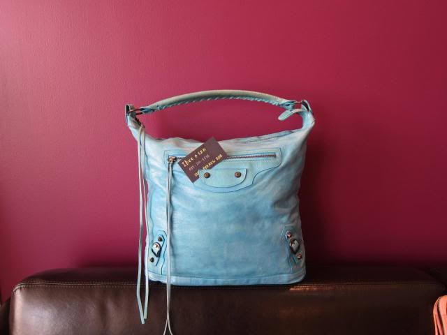 สีฟ้าอ่อน Lago รุ่นมีหูหิ้วและกุญแจ มีสายสะพาย ขายแล้วค่ะ