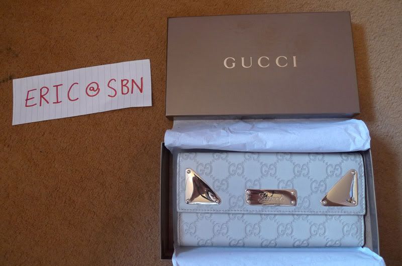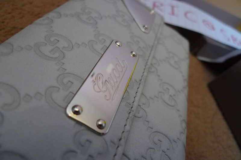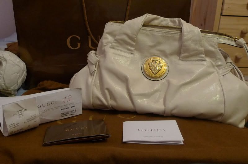 กระเป๋าหนังแท้ลาย gucci สีเทาขาวพร้อมป้ายโลหะ collection 2009อีกเช่นเคย สวยมากครับ