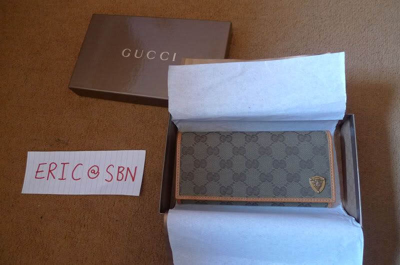 กระเป๋าสตางค์ผ้าลาย Gucci ยาว พร้อมป้ายเหล็กใบนี้ใน shop uk ราคา 215ปอน