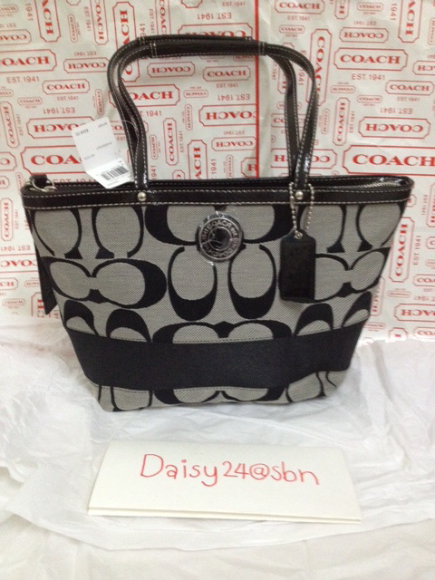 f18637 COACH MADISON QUILTED CHEVRON NYLON SOPHIA SATCHEL ราคา 9000 บาท รุ่นนี้หายากแล้วคะ ไม่ค่อยมีแล้ว เป็นรุ่นลิมิเต็ดที่ทำออกมาตอนครบรอบ 70 ปี ของกระเป๋าcoach สีดำสวยหรูมากๆคะ ขอบอก