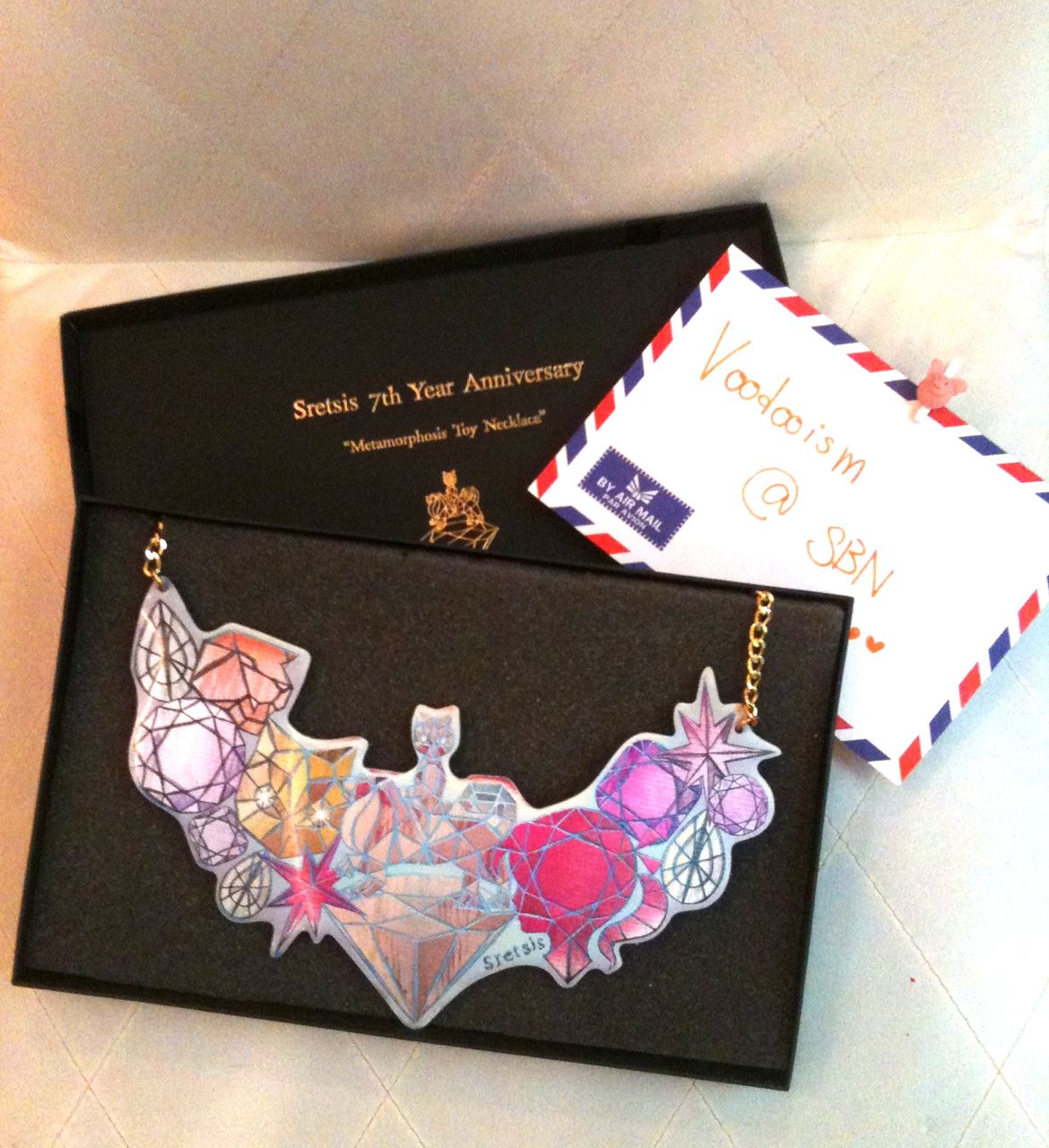 สร้อยคอ 3 มิติ ครอบรอบ 7 ปี ของ Sretsis ค่ะ ไม่เคยใช้เลยค่ะ แต่ตรงขอบกล่องด้านบนขวาถลอกนิดนึง