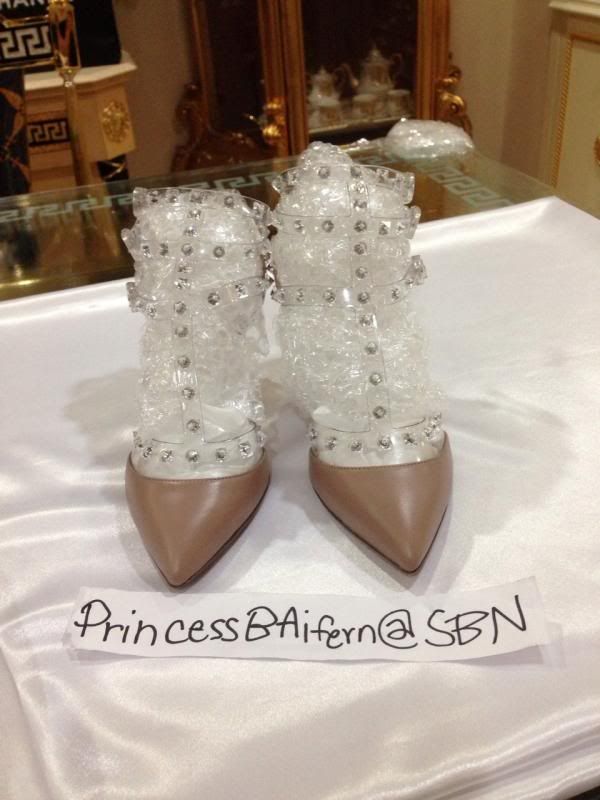 New Valentino rock-stud Shoes Naked สี Nude ส้นแก้ว Size 36 ส้นสูง 2.5" ราคา 38,000 บาท