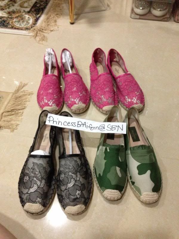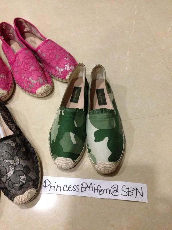 New Valentino shoes Flats ผ้าลายทหาร สีเขียว Size 36 ราคา 16,000 บาท