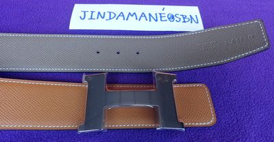 HERMES reversible BELT 42MM (กว้าง 1.2นิ้ว) ขนาดใหญ่สวยมาก size 85 stamp P หรือสาวยาว 40.5 นิ้ว ความกว้าง 1.5นิ้ว สามารถเจาะรูเพิ่มได้ค่ะ กำลังฮิตสุดๆ หนัง epsom/epsom สี gold/etupe อุปกรณ์ครบ กล่อง ริบบิ้น ถุงกระดาษ ขายแต่สายที่ 22,200 บาท
