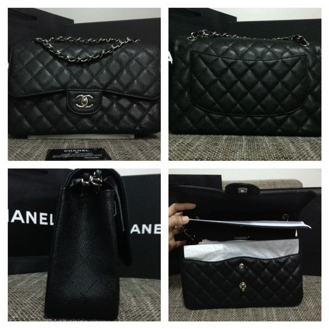CHANEL CLASSIC JUMBO 12INCHES black cavier silverhardware สีดำ โซ๋เงิน ทรงเป๊ะ แข็งโป้ก หนังฟูทุกตารางเช่นกัน ใบนี้ได้จากlondon หนังสวยมันเงา ฟูเว่อร์ค่ะ อุปกรณ์ครบกล่อง hologram carecard carebook ผ้าเช็ดประเป๋า ดอกคาเมเลีย 2 ดอก ริบบิ้น 2เส้น ถุงกระดาษ ใบเสร็จตัวจริง ขอขายที่ 138,500 บาท HOT HOT PRICE