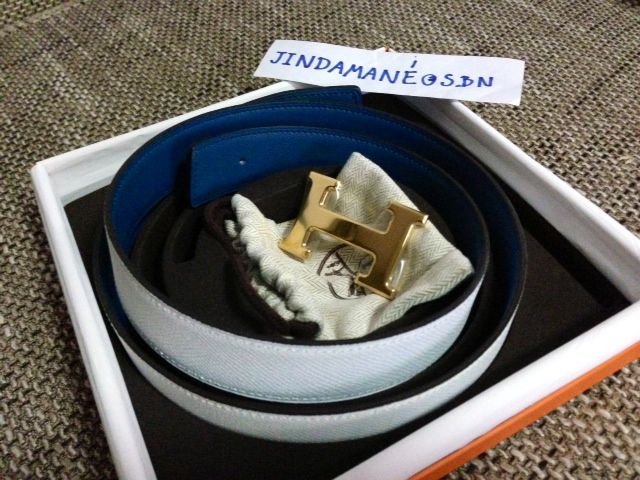HERMES REVERSIBLE BELT SIZE 90 STAMP Q สีblue galice/white หายากมากมายสีนี้ค่ะ ขอขายที่ 27,900 บาท
