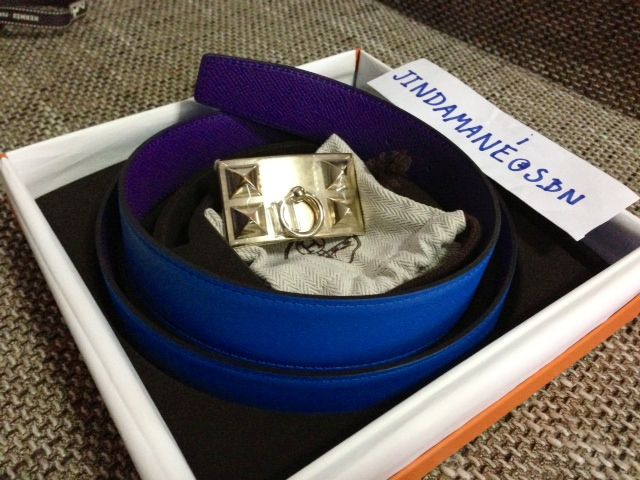 HERMES reversible belt size 95 สีม่วงcrocus /blue hydra stamp P หนังswift /epsom หายากมากกกสีนี้ อุปกรณ์ครบๆมีกล่อง และถุงกระดาษและ ริบบิ้นให้ด้วยค่ะ ขอขายที soldout หัว CDC สีทอง เข้ากันมากกกกค่ะ