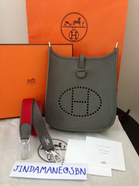 HERMES MINI EVELYN AMAZONE TAURILLON CLEMENCE มาเพิ่มอีก 1 ใบพลิกแผ่นดินหามาได้ค่ะ หนัง clemence SIZE ขนาด ก 2 นิ้ว ย 6.5 ส 8.5 นิ้ว สีเทาetain stamp Q ล่าสุดใหม่เว่อร์ น่ารักมว้ากกกค่ะ แม่ค้าเห็นแล้วต้องรีบสอยมาเลย เพราะหาไม่ได้ง่ายๆ สำหรับไซส์นี้ สีนี้ สายสะพาย2 tones ด้านนึงเทา และด้านนึงแดงแถบเทา เก๋มากๆ สายยาว 44.5 นิ้ว ใช้ได้แบบคุ้มๆทั้งผู้ใหญ่ ช และ ญ รวมทั้งคุณหนูกุมารเศรษฐี อุปกรณ์ครบ fulloption จากshop อุปกรณ์ครบทุกสิ่งอย่าง สติกเกอร์แปะครบทุกจุด กล่อง ถุงผ้า 2 ผืน สำหรับกระเป๋า และสายสะพาย ถุงกระดาษ การันตีการ์ด ริบบิ้น ใบเสร็จตัวจริง ขอขายที่ 65,900 บาท