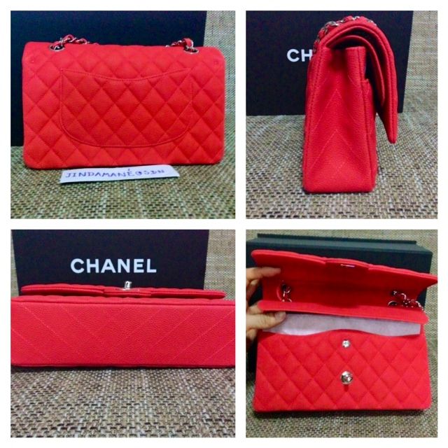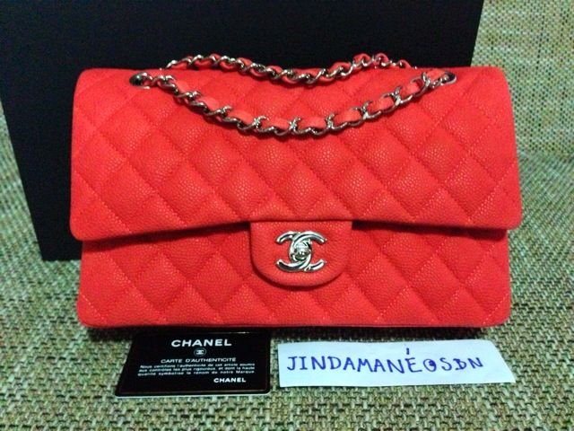 CHANEL CLASSIC MEDIUM 10 INCHES สีแดงอมส้ม มองอีกทีอ้าวชมพู perfect combination สีแซบมากกกก หนัง cavier silver hardware holo 179xxx งามมาก ทรงเป๊ะแข็งโป๊ก อุปกรณ์ครบๆ