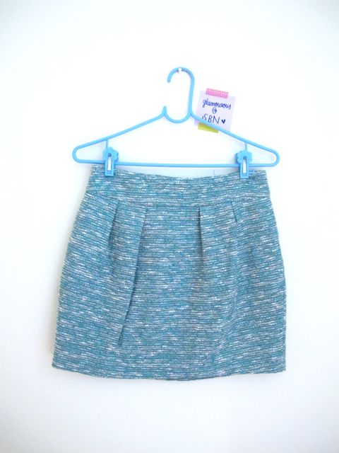used once ZARA SIZE M กระโปรงผ้าทวีตสีเขียว-ขาว 1200