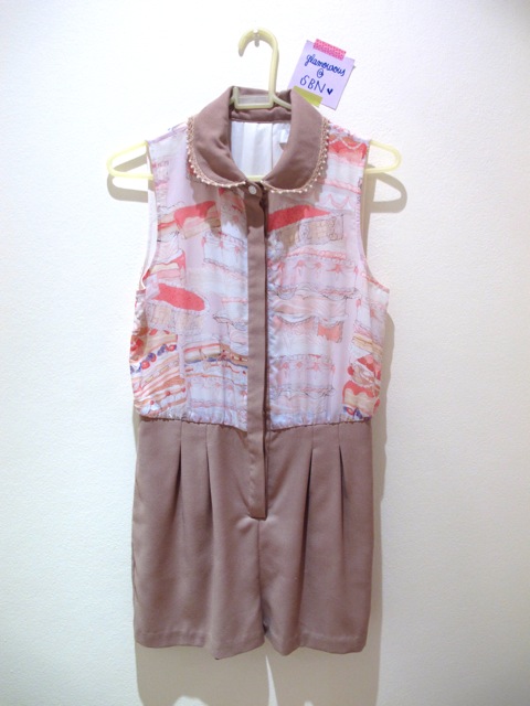 used once TOPSHOP jumpsuit ตรงกางเกงเป็นคล้ายผ้าลูกฟูกนุ่มๆ ช่วงบนเสื้อลายเหลือบ polka dot ค่ะ