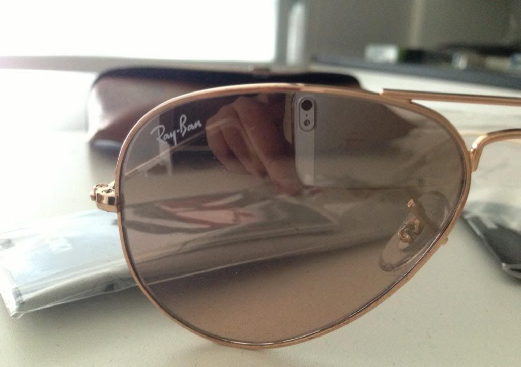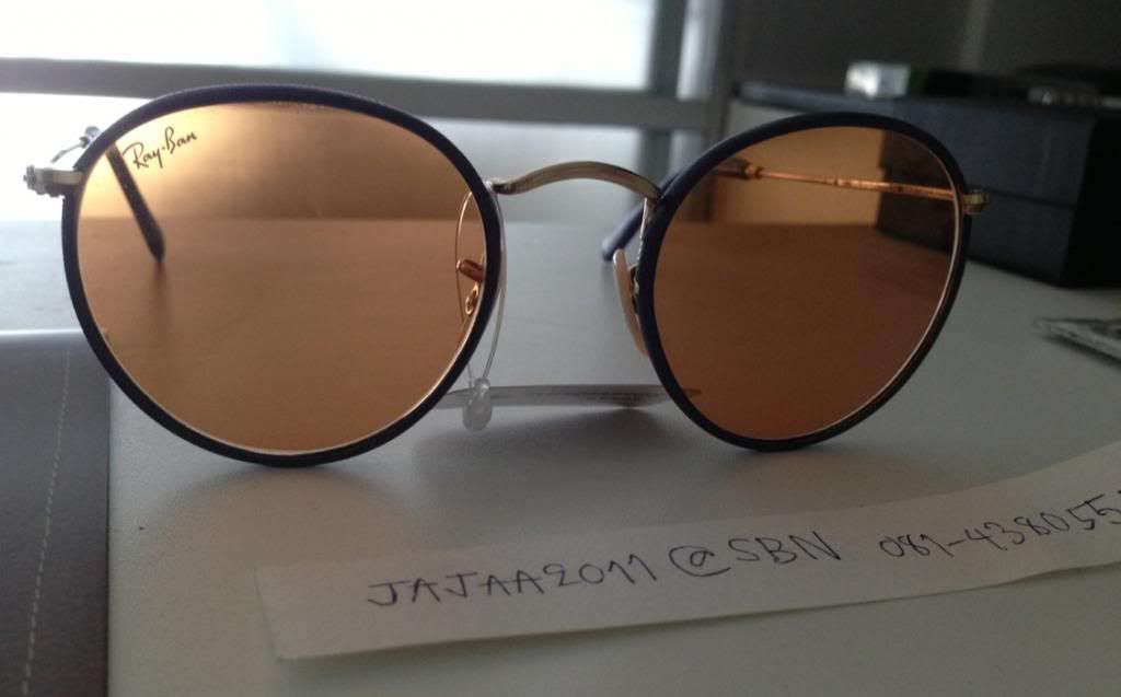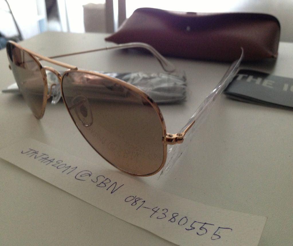 4. แว่นตาRayban รุ่น RB3025 กรอบทองเลนส์ mirror สีชมพู ปรับแสงอัตโนมัติ สวยหวาน size 55mm เหมาะสำหรับสาวๆ รูปหน้าเล็กค่ะ เพราะว่าใส่แล้วจะสวยพอดีหน้าเป๊ะมาก ขอบอกราคา 4,100 บาท ราคานี้รวมค่าจัดส่งแล้วค่ะ รับประกันว่าของแท้แน่นอนค่ะ
