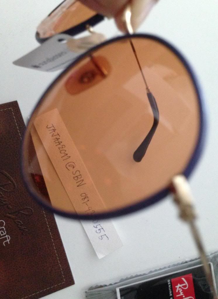 5. แว่นตา Rayban รุ่น 3475Q 001-13 เลนส์สีส้มกรอบและปลายหุ้มด้วยหนังแท้สีม่วง รับประกันว่าใส่แล้วเดิร์นมากที่สุด จนใครๆต้องถามว่าซื้อที่ไหนคะ เพราะว่ามันสวยเก๋จริงๆ