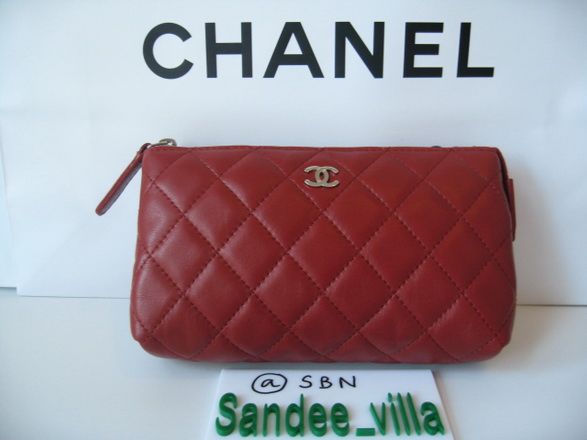 NEW CHANEL POUCH สีแดง หนังแลมป์ SHW ขนาด 7*4*2” กระเป๋าอเนกประสงค์ใส่ของสารพัด ไม่ว่าจะเป็นเครื่องสำอางค์ โทรศัพท์มือถือ ใส่สตางค์ก็ได้ค่ะ ราคา 17,500 บาท