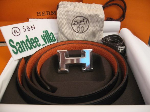 NEW HERMES Reversible BELT 32mm BLACK/ORANGE Stamp P Size 85 หัวเงินเงา ราคา [SIZE=7]24,900 [SIZE=7]บาท
