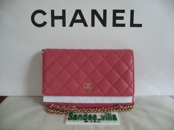 NEW CHANEL WALLET ON CHAIN สีชมพูสดIN LAMB MATTE GHW (13S) สีชมพูตัดกับโซ่ทองด้าน ลงตัวที่สุด ราคา 51,900 บาท