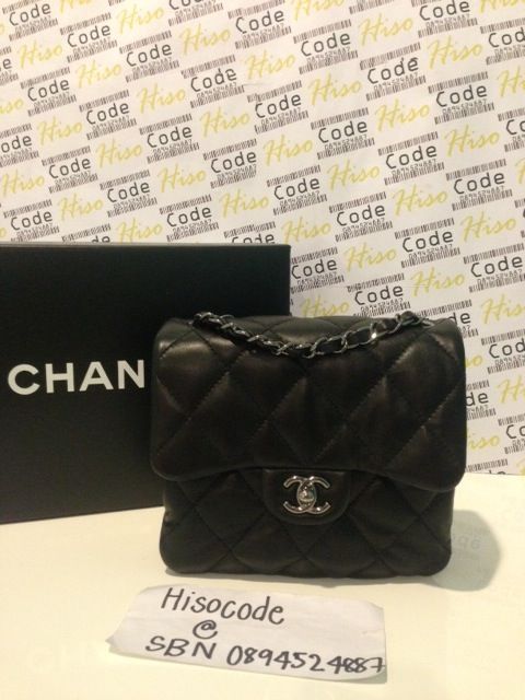 NEW COLLECTION CHANEL CLASSIC MINI 8" SQUARE BLACK SHW รุ่นใหม่ล่่่าสุดเลยคะ หนังแลมป์ตัวนี้ขอบอกว่่าเบาและกันรอยขีดข่วนสุดเลย เหมาะสำหรับสาวๆที่ไม่รักษาหรือถนุถนอมกระเป๋านะค่า ขาย 83,000 baht ka