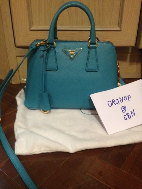 PRADA ALMA BB สีฟ้า อุปกรณ์ ถุงผ้า ถุงกระดาษ การ์ด สายสะพายค่ะ ราคา cf บาท โทร 081-6260607