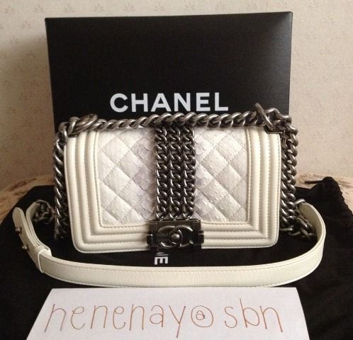 NEW CHANEL BOY PYTHON LIMITED EDITION 8" สีขาว