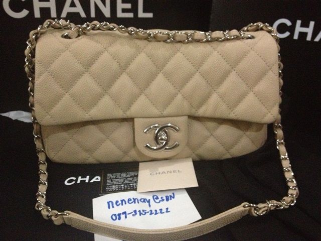 USED LIKE NEW CHANEL CLASSIC JUMBO BEIGE CAVIAR อะไหล่เงิน สีเบจสวยดูดี รุ่นนี้เป็นแบบฝาเดียว น้ำหนักเบากว่ารุ่นใหม่ๆเยอะค่ะ สภาพสวยเลยค่ะ มุมไม่หัก หนังป่อง HOLO 139XXXXX
