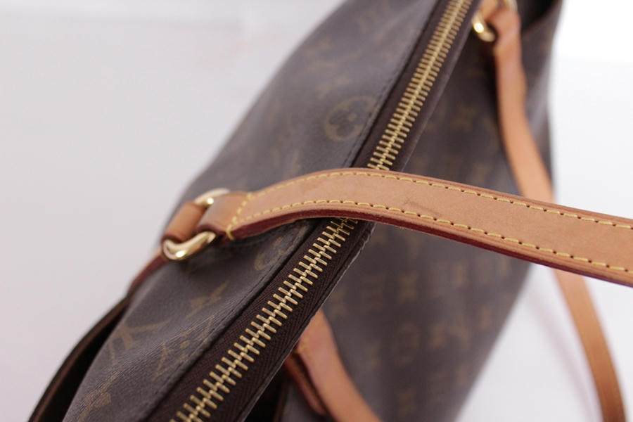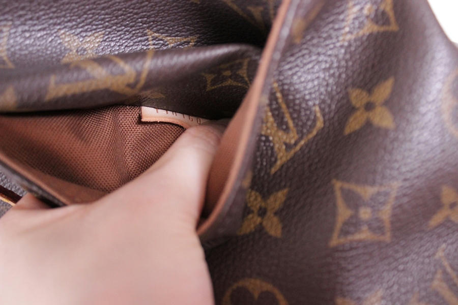 มีเลอะสีชมพูจางๆที่ตัวกระเป๋าด้านนอก แต่มองแทบไม่เห็นค่ะ ตรงหัวซิบLVมีรอยถลอกเล็กน้อยตามรูปค่ะ และก็ด้านในเลอะฝุ่นค่ะแต่ไม่มีรอยปากกาหรือรอยขีดข่วนใดๆ สายเริ่มเปลี่ยนสีเข้มขึ้นตามรูปค่ะ ตัวกระเป๋าเริ่มออกเหลืองตามรูปค่ะ สภาพประมาณ70%