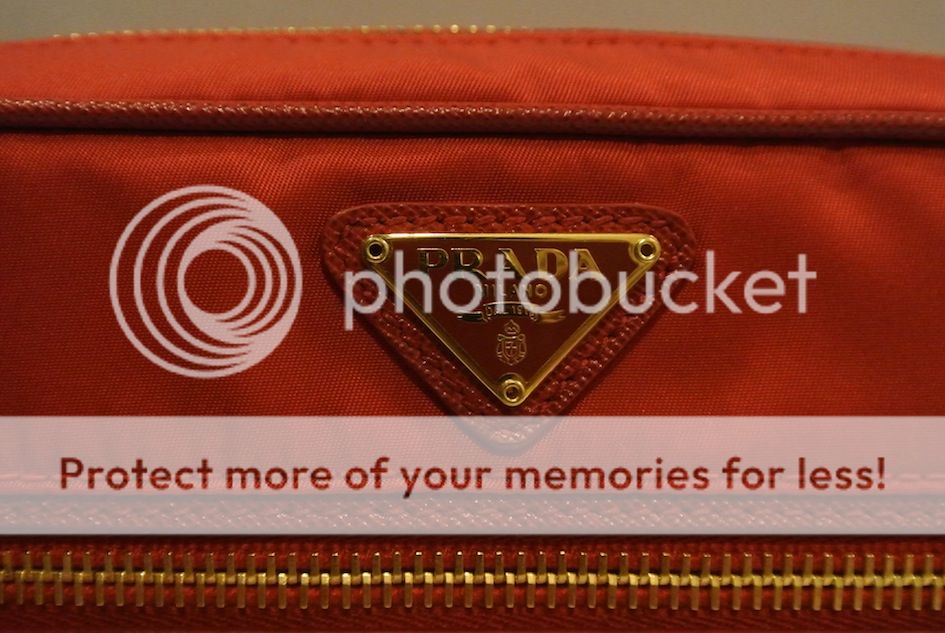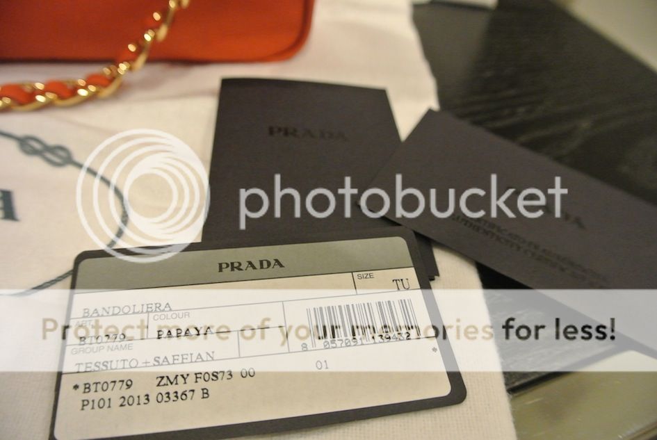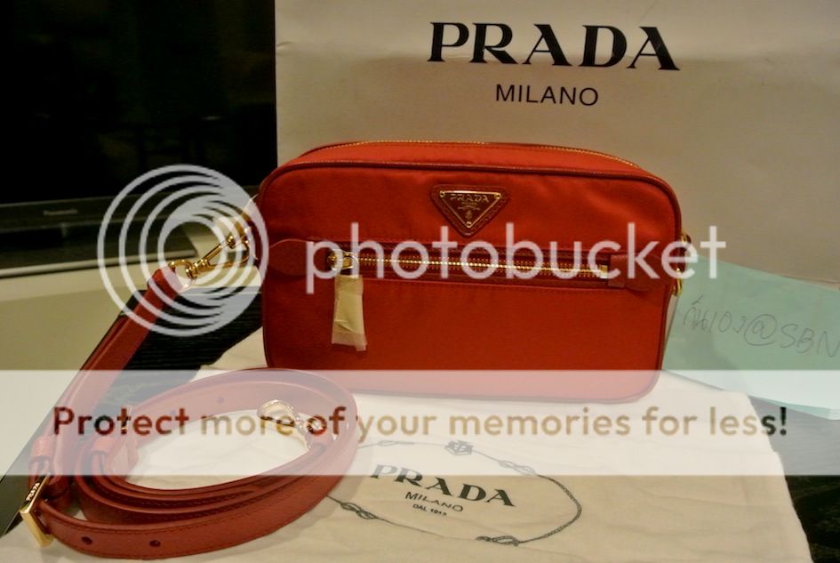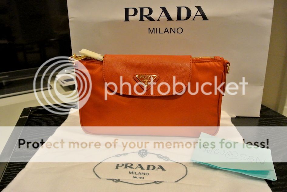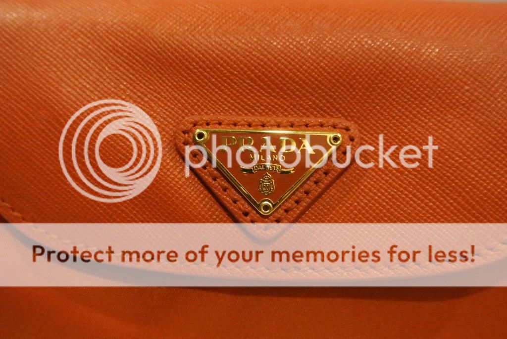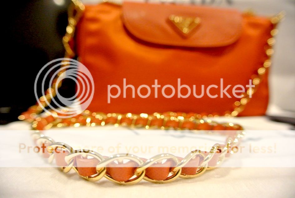 Prada สีส้ม papaya โซ่ทอง วัสดุเป็นหนัง saffiano+nylon